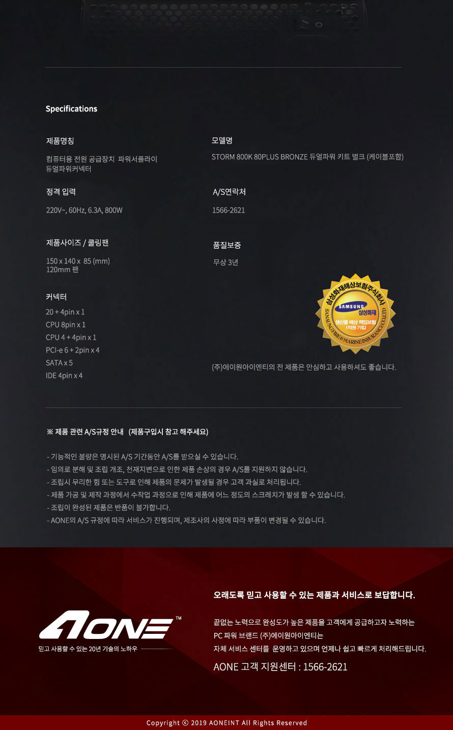 AONE STORM 800K 80PLUS BRONZE µà¾óÆÄ¿ö KIT ¹úÅ©