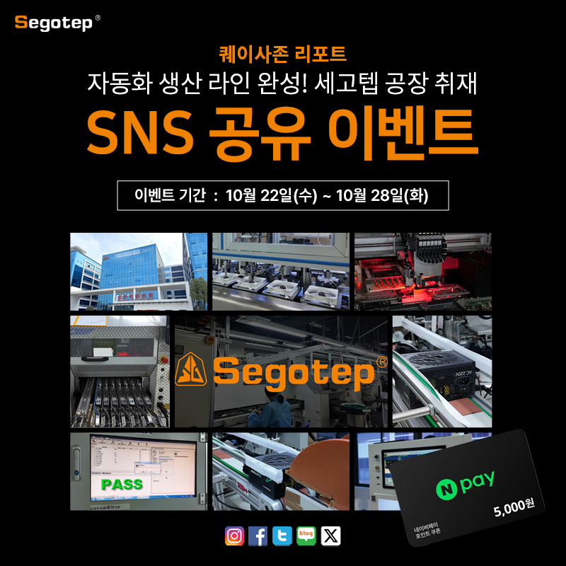 ÄùÀÌ»çÁ¸¿¡¼­ ¡°Segotep ¸®Æ÷Æ®¿Í À̺¥Æ®¸¦ SNS °øÀ¯ÇÏ°í ³×À̹öÆäÀÌ Æ÷ÀÎÆ® ¹ÞÀÚ!¡±¿Í ¡°¼¼°íÅÜ Segotep ÀÚµ¿È­ »ý»ê ¶óÀÎ ¿Ï¼º! ¼¼°íÅÜ °øÀå ÃëÀ硱 °ø½Ä ¸®Æ÷Æ®¿¡ ¸¹Àº °ü½É°ú Âü¿© ºÎʵ右´Ï´Ù.