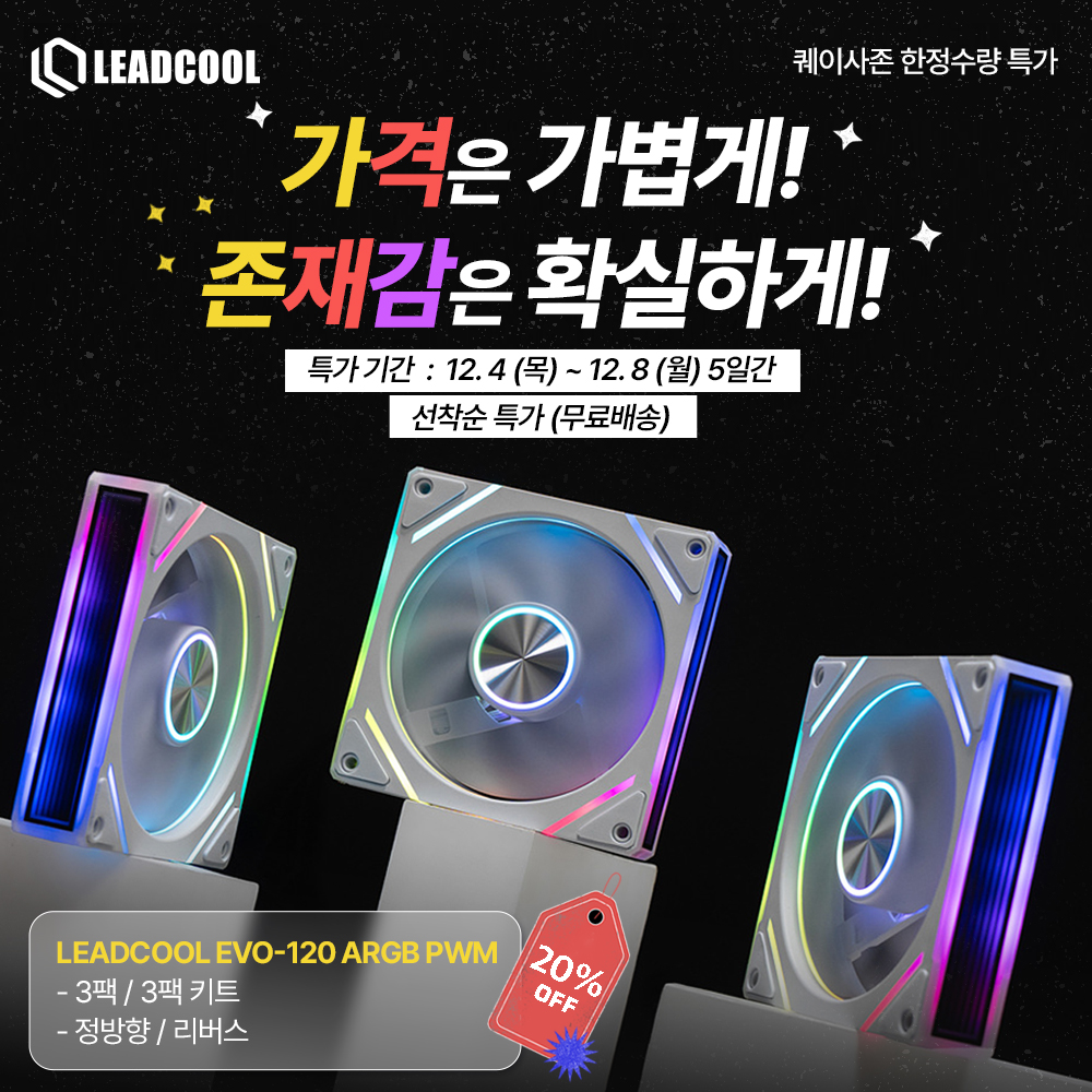 ¸®µåÄð LEADCOOL EVO-120 ARGB ½Ã½ºÅÛÆÒ ½Ã¸®Áî ±¹³»ÃÖ´ë ITÄ¿¹Â´ÏƼÀÎ ¡®ÄùÀÌ»çÁ¸¡¯¿¡¼ Ư°¡ À̺¥Æ® µî·ÏµÇ¾î ¾È³»Çص帮°íÀÚ ÇÕ´Ï´Ù.