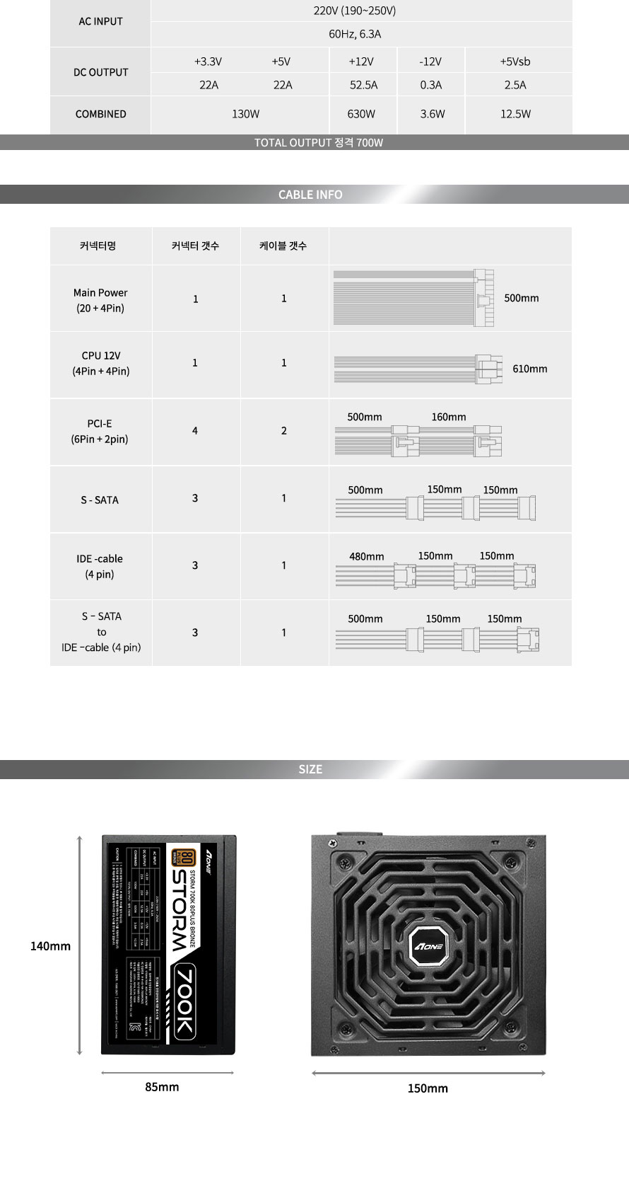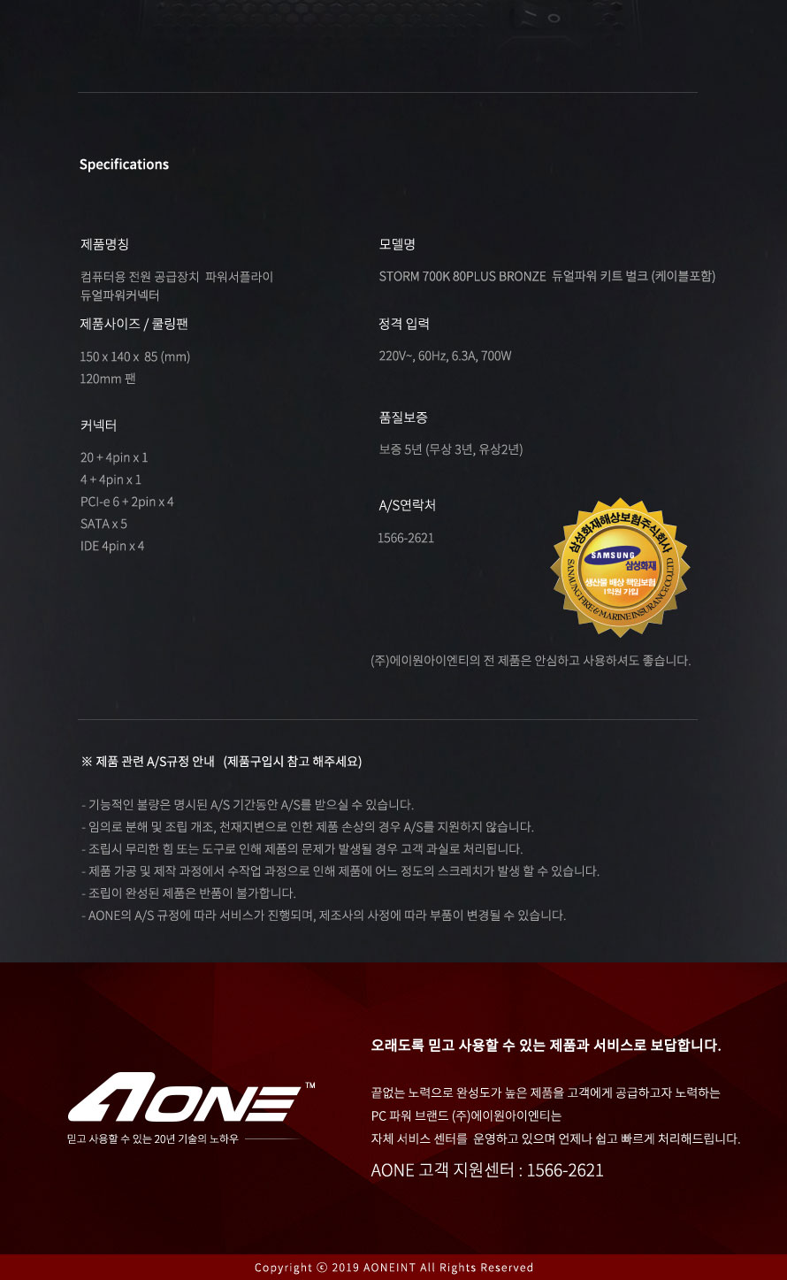 AONE STORM 700K 80PLUS BRONZE µà¾óÆÄ¿ö KIT ¹úÅ©