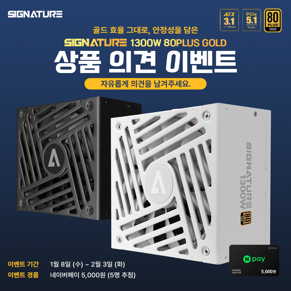 'AONE ½Ã±×´Ïó 1300W 80PLUS°ñµå Ç®¸ðµâ·¯ ATX3.1' ÆÄ¿ö¼ÇöóÀ̰¡ Ãâ½ÃµÇ¾ú½À´Ï´Ù.