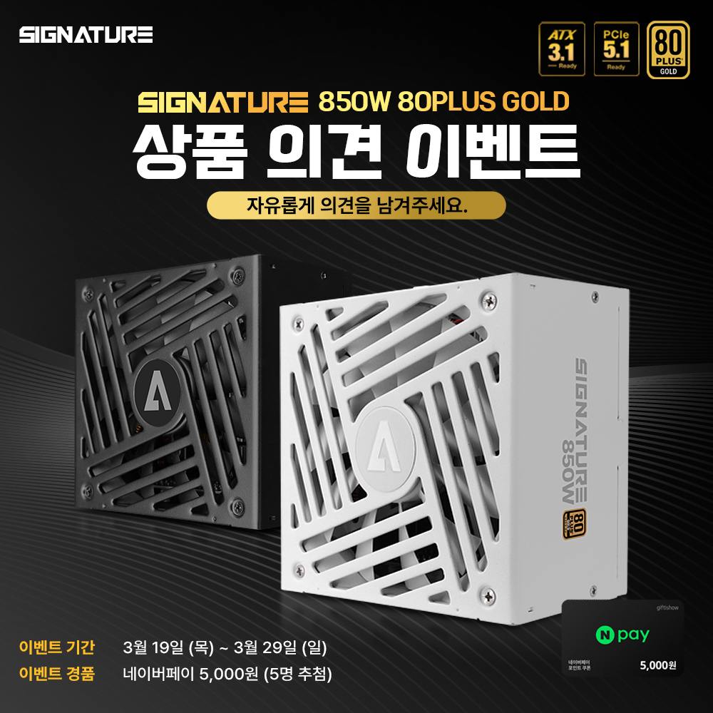 [À̺¥Æ®] 'AONE ½Ã±×´Ïó 850W 80PLUS°ñµå Ç®¸ðµâ·¯ ATX3.1' »óǰÀÇ°ß À̺¥Æ® ¾È³»